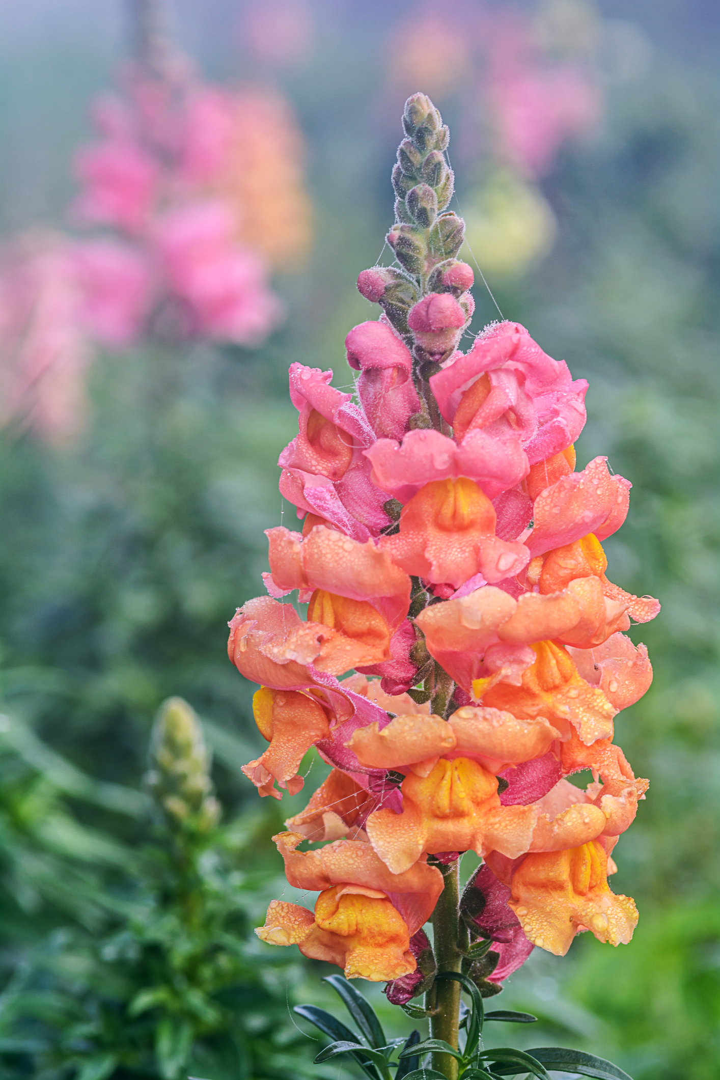 The odd common name is because its flower head looks like a dragon and when children (grownups too) pinch the back of the flower, the two petals separate and will “snap” back together when let go. For fragrance and statuesque beauty (3 ft.), ‘Double Azalea Apricot’ takes the grand prize of all snapdragons, but there are dwarf and standard sized varieties too. Snapdragons are perennials and prefer cooler temperatures ideally when evenings are in the 40s and days are in the low 70s F. and can also be grown as annuals where temperatures are warm.
