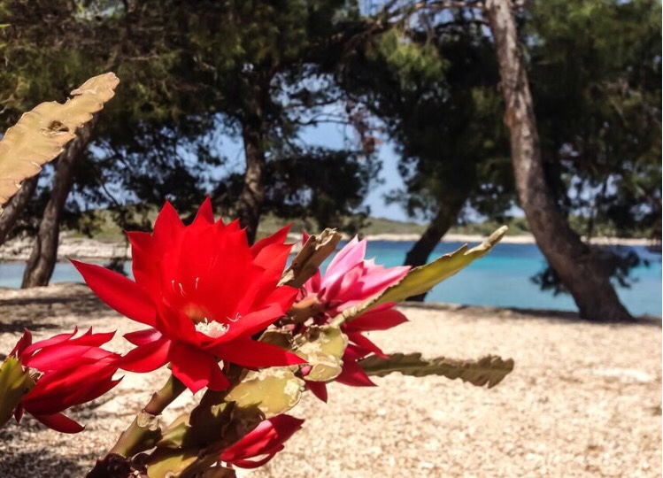 Epiphytic cactus with multi-petalled bright funnel-shaped flowers that spread out from 4 - 6 inches, and leaf-like wavy edged portions.