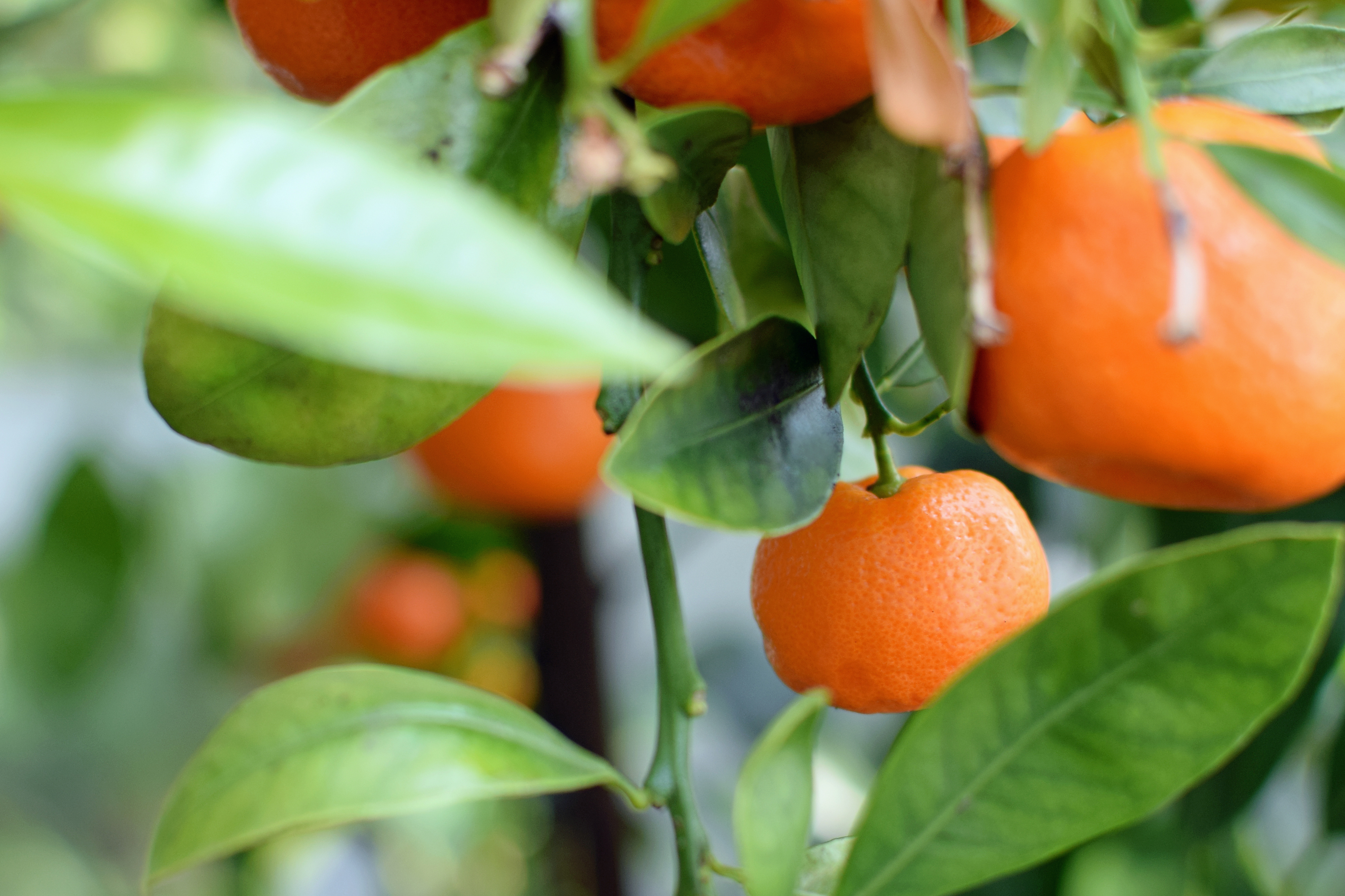 Evergreen citrus tree with small easy to peel orange fruits. Sweeter than a standard orange. Will yield a large crop one year followed by a smaller crop the next year.