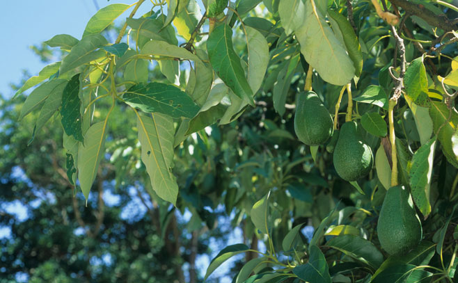 Persea americana is an evergreen tree native to Mexico and Central America. Avocados are a commercial crop grown in tropical, sub-tropical and Mediterranean climates all over the world. The tree can grow up to 60' when planted in the landscape and does best in full sun, humus or mulch amended, well draining soil and a frost free climate. Mexican avocado is the cold hardiest down to 26 degrees F. for short periods of time.