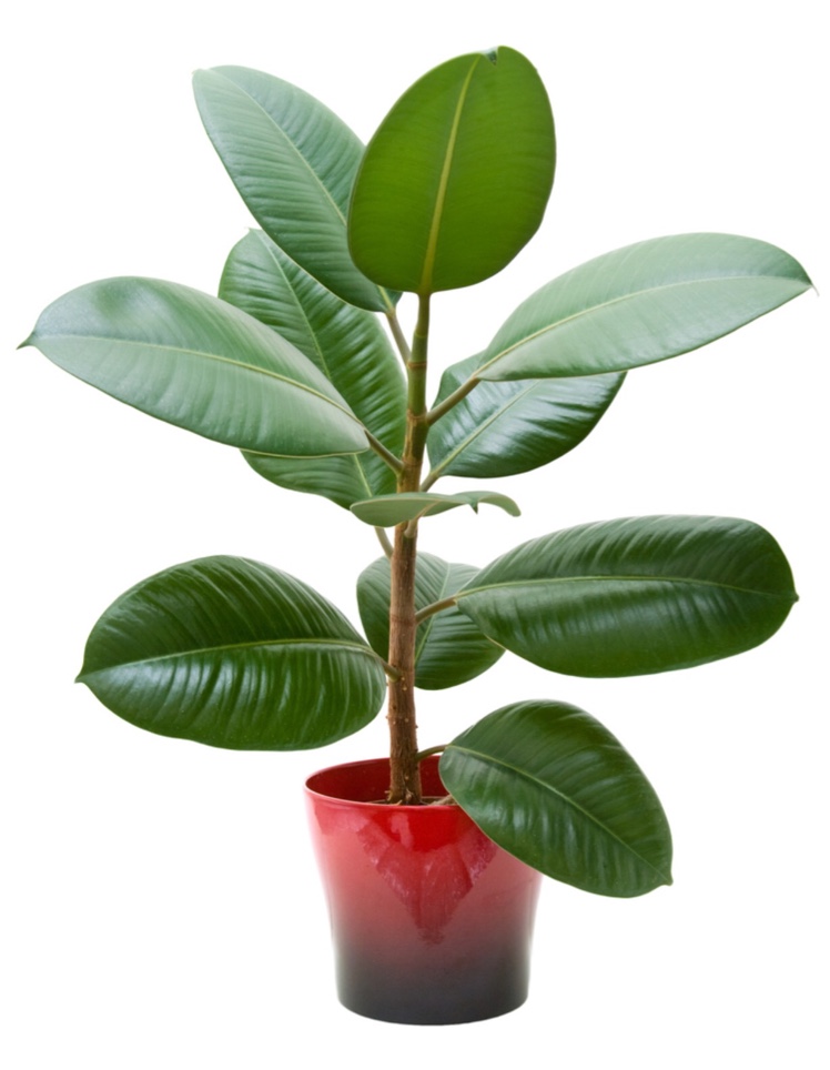 Commonly known as the Rubber tree, Rubber plant, India rubber fig, or India rubber tree.This evergreen tropical tree, in its native habitat, can reach 197 ft. high and wide with leathery, glossy dark green leaves, but remains much shorter in most other areas, especially indoors. Does best in bright light and moist, organic soils that drain well, and away from strong drafts or wind. Only tolerates a light frost for a short period of time,so it is used as a landscape plant only in frost free climates. Otherwise use it successfully as a patio plant or indoor plant in bright, indirect light. Do not allow plant to sit in water as this may lead to root rot. Feed with a slow release or organic fertilizer formulated for houseplants.