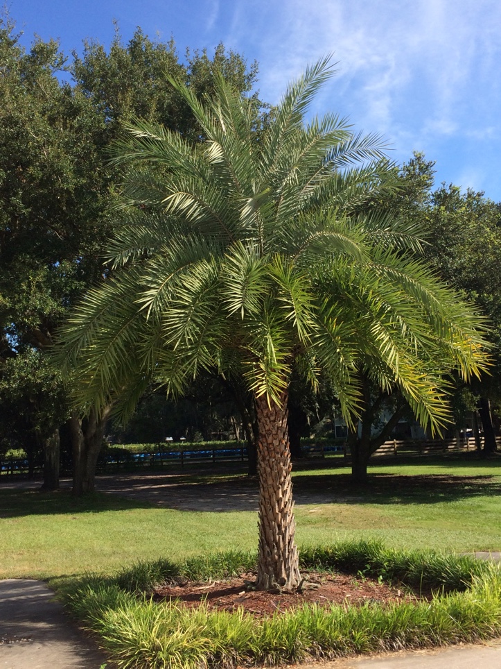 Phoenix sylvestris is a fast growing palm with similar characteristics to Phoenix dactylifera. It has a solitary robust trunk, with interesting diamond pattern created by leaf scars. The Sylvester Date Trunk is swollen at the base, about 13-18 inches in diameter. It is a beautiful accent palm that blends well into many landscape themes. The trunks are robust and the canopies average 18' across at maturity. Grows well where temperatures are abovwe 15 F. Produces edible fruit.