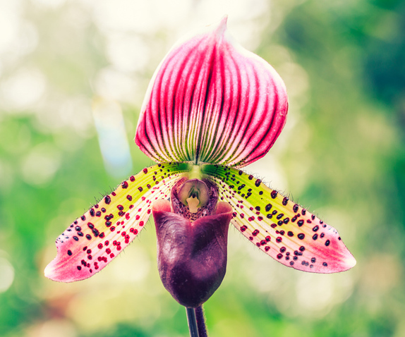 Despite its wildly exotic flowers and often variegated foliage, P. insigne is among the cold hardiest and least fussy of the lady slipper orchids and comes in a wide array of whites, greens, yellows or combinations with contrasting lower, shoe-shaped lips. Where winters are mild, group with other orchids outdoors in shade or display indoors. Not toxic to humans, dogs or cats if eaten, but may cause irritation for those with sensitive skin.