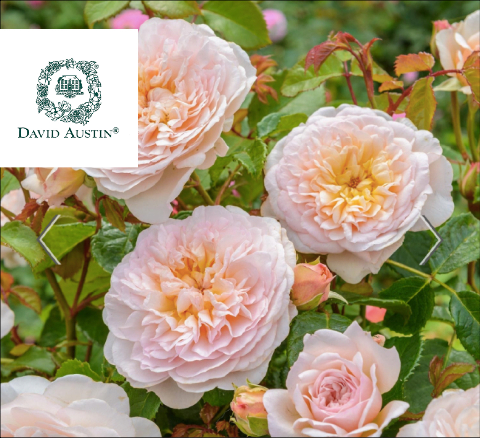 An exceptionally beautiful David Austin rose; the distinctive blooms are very neat and rather flat. Each bloom is a lovely soft pink, with a subtle apricot hue, the smaller central petals deepening to rich apricot and surrounding a button eye, which unfurls to reveal deep-set stamens. The strong tea fragrance also had delicious hints of lemon and grapefruit. It forms a bushy shrub with strong, healthy, upright growth.English Roses have natural, shrubby growth which makes them ideal for both rose borders and combining with other plants in mixed borders. The more compact English Roses work well in rose beds, whilst taller varieties can be trained against a post and rail fence.