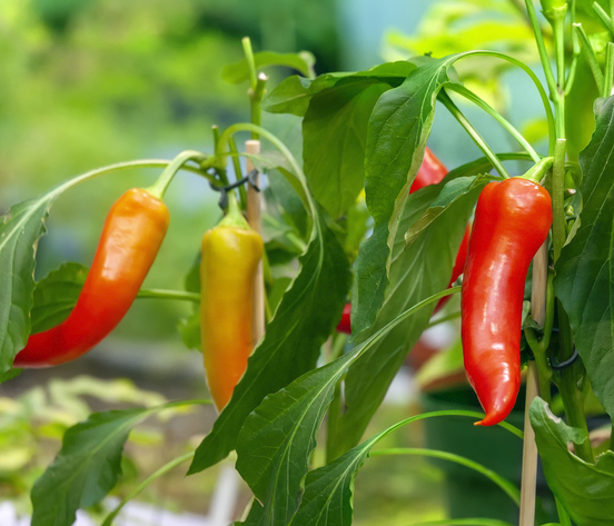 Capsicum annuum, commonly called chilli peppers or bell peppers (depending on the cultivar) are perennial shrubs in mild winter climates, but in temperate areas, they are annuals. Some are ornamental and others bear edible peppers. Feed with a slow release or organic fertilizer formulated for vegetables. The plants are extremely varied with a green to totally white variegation on the foliage as well as the peppers. The flowers are white-cream or purple. The peppers can be green, yellow, orange, black or red. Some have a mild flavor, while others are so fiery that they’ll burn your tongue. Chances are that if they were sold for use as a decorative plant, they were treated with insecticides at the production facility and should not be used for culinary purposes.Although perennial, they are primarily grown as annuals.