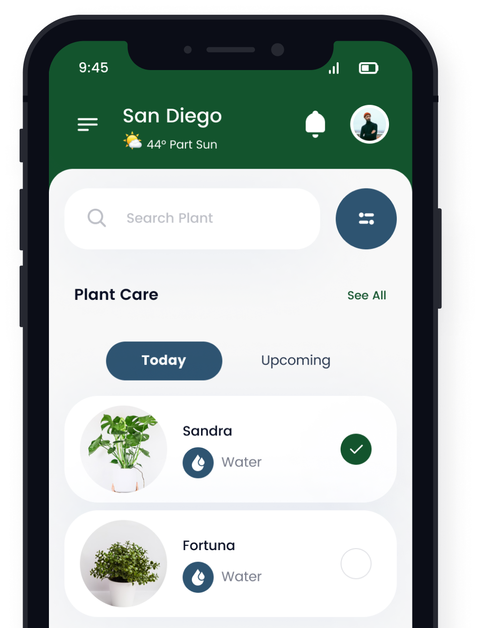 View all your plants in one place, give them a name and a spot in your home